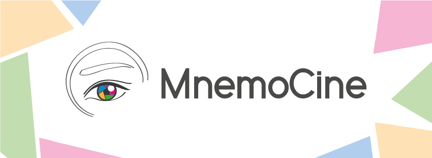 A identidade visual do MnemoCine foi idealizada a partir do desejo de realizar a desconstrução, e posterior fusão, daquilo que se acredita serem dois símbolos que caracterizam bem a percepção visual do ser humano e daquilo que auxilia o mesmo a registrar o mundo por meio do audiovisual: o olho humano e a câmera, respectivamente. Ambos são sistemas complexos, intrigantes e, até, ‘semelhantes’: córnea/vidro da lente, pupila/abertura da lente, cristalino/foco da lente, íris/diafragma, retina/sensor/filme, imagens capturadas ‘de cabeça para baixo’, etc.