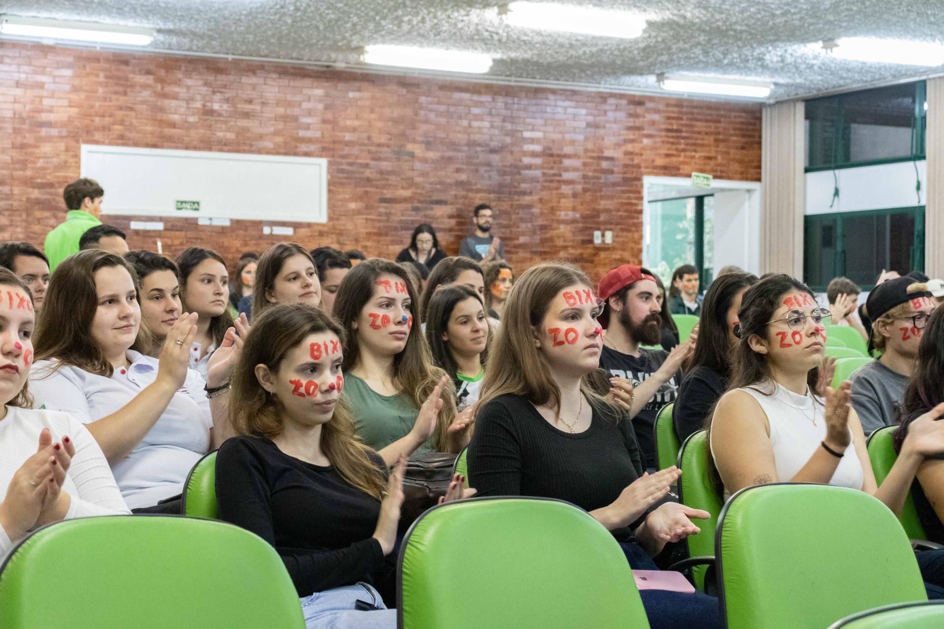 Logo após, ocorreram as falas de autoridades e do Diretório Central dos e das Estudantes (DCE). O coordenador geral do DCE, Luiz Eduardo Bonetti, saudou os novos alunos, explicou a atuação do Diretório Central, os objetivos da organização estudantil e destacou a importância da permanência dos acadêmicos, com foco no cuidado com a saúde mental. “A reflexão que fica e que precisa guiar o debate sobre a universidade que queremos é a permanência dos alunos. Os alunos precisam ingressar e permanecer, é preciso ter uma discussão mais aprofundada sobre permanência e que consiga englobar a pauta da saúde mental”, enfatiza.