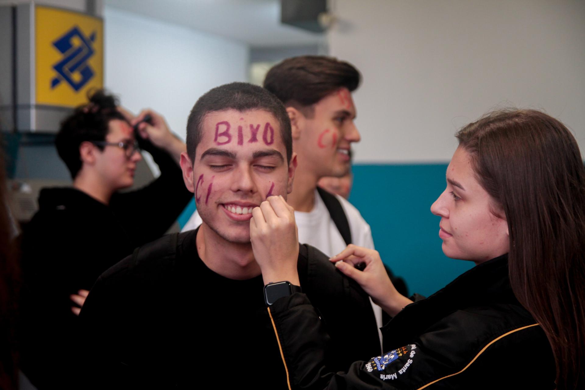 Reunidos no Centro de Convenções da Universidade, calouros, veteranos, egressos e servidores acompanharam a Recepção Institucional. Para os bixos, a recepção é o momento de conhecer os veteranos, o campus e também já pensar no semestre que inicia. As calouras de Enfermagem Gabrieli Barbieri Jacobi e Gabriellen Machado Prado chegaram ao Centro de Convenções animadas com a recepção: “Ainda estou me acomodando, hoje já me perdi pelo campus que é gigante, mas está sendo um processo muito legal”, conta Gabrieli, que veio de Entre-Ijuís. Para a colega, é o início de uma nova etapa: “Era meu sonho estar aqui, cursando o curso em que eu estou. Essa é a realização de um sonho”, diz Gabriellen, de São Gabriel.