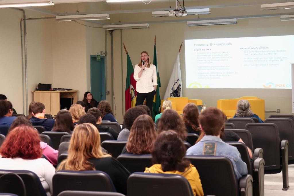 Intitulada “Escrevendo Vidas, Curando Imaginários: Sobre a Prática Digital Auto/biográfica de Homens Bi+”, a palestra reuniu 55 participantes, entre discentes de graduação, pós-graduação e docentes. Miesiac, vinculado à iniciativa sueca GENHDI (financiada pelo Conselho Sueco de Pesquisa), detalhou seu trabalho no biarkiv.se, arquivo digital que reúne relatos de homens bissexuais, pansexuais e outros sob a sigla bi+.