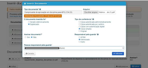 Em “assinar documento” clicar em “sim”. E clicar em “adicionar”.