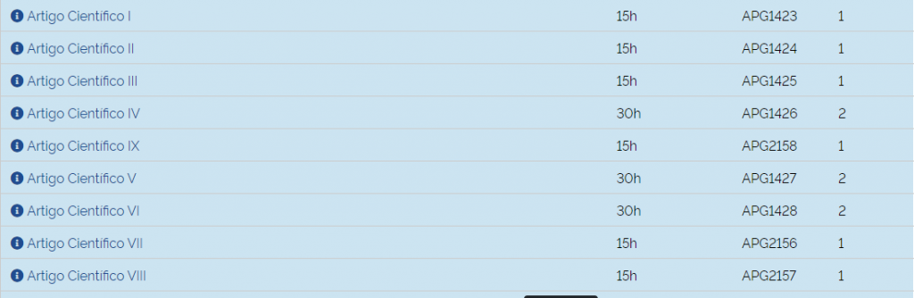 Após consultar o Qualis verificar qual APG corresponde a 1 ou 2 créditos na página do programa em estrutura curricular (disciplinas optativas).