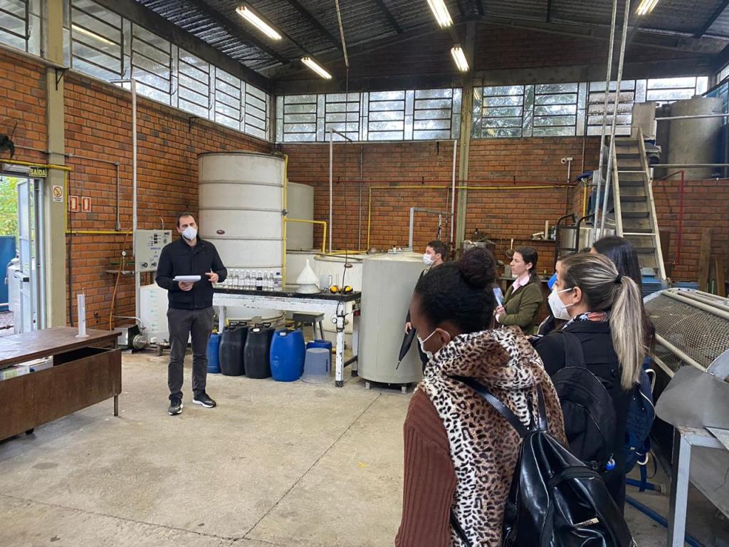 No dia 07 de junho, os alunos do terceiro semestre do curso Técnico em Farmácia realizaram visita técnica à Usina Piloto de Etanol do Colégio Politécnico e ao Centro de Ensino, Pesquisa e Produção em Álcool (CEPPA), conduzidas pelo Prof. Filipe Donato, responsável por ambos laboratórios.Na Usina Piloto de Etanol foi apresentado o fluxo de atividades e a obtenção de álcool por diferentes matérias-primas, como cana-de-açúcar, batata, milho, trigo, triticale, entre outas. Ainda, foi apresentado o processo de transformação de bebidas alcoólicas com alto teor alcoólico apreendidas pela Receita Federal em álcool, o qual é utilizado como etanol combustível para abastecimento dos veículos da Instituição e como matéria-prima para produção de álcool 70⁰ INPM e álcool glicerinado.No CEPPA, foi apresentada a estrutura, equipamentos e matérias-primas, bem como fluxo de produção dos sanitizante a base de álcool (álcool 70⁰ INPM e álcool glicerinado 80%). Tais produtos foram doados para instituições públicas, projetos e autarquias, como departamentos na UFSM em Santa Maria e em Frederico Westphalen, na Unipampa, Receita Federal, hospitais, prefeituras (Cachoeira do Sul, Santa Maria), entre outros. Até o momento foram produzidos e distribuídos mais de 20 mil litros de sanitizantes.A visita técnica proposta na disciplina de Farmacotécnica II, sob responsabilidade da profª Magda Monego, teve como objetivo complementar o conteúdo abordado e sala de aula, na temática forma farmacêutica semissólida, tipo gel.