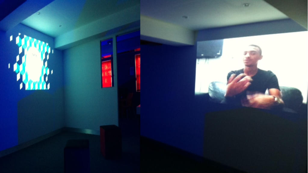 Na segunda sala há uma instalação de vídeo apresentando depoimentos e exibições de dados de Moçambique, Brasil e RSA. Além disso, temos códigos QR para que os participantes possam se conectar ao site do nosso projeto