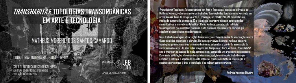 Material gráfico de divulgação da Exposição Trashabitat: Topologias Transorgânicas em Arte e Tecnologia, realizada na sala Cláudio Carriconde (CAL/UFSM), entre os dias 07 e 17 de junho de 2016.