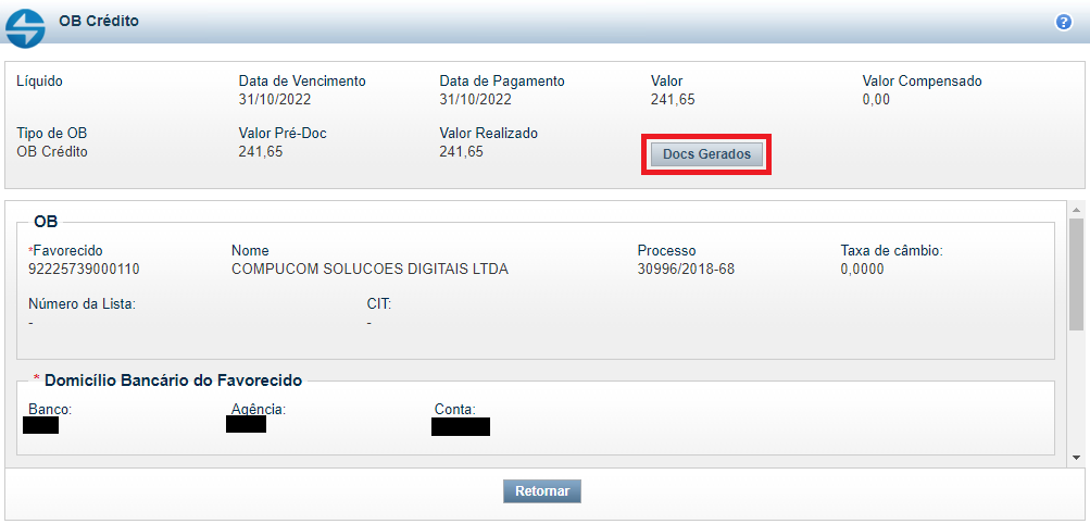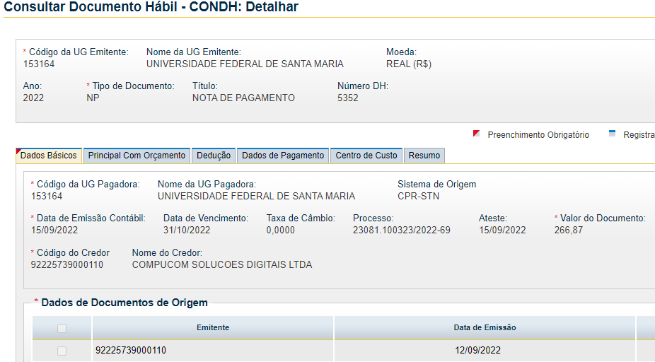 Utilizaremos como exemplo os pagamentos relativos à empresa COMPUCOM – CNPJ: 92225739000110.