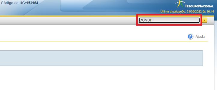 No campo indicado à direita da tela digitar “CONDH” (Consultar Documento Hábil) e apertar a tecla “ENTER” no teclado: