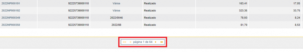 Na coluna “Estado” encontra-se o status de cada pagamento, sendo que “Pendente de Realização” significa que a NF (nota fiscal) ainda não foi paga em sua totalidade (pode ter acontecido um pagamento parcial) e “Realizado” significa que já foi paga em sua totalidade.
