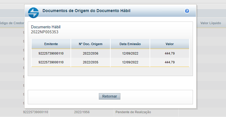 Para inspecionar cada pagamento clicar em cada link na coluna “Documento Hábil”: