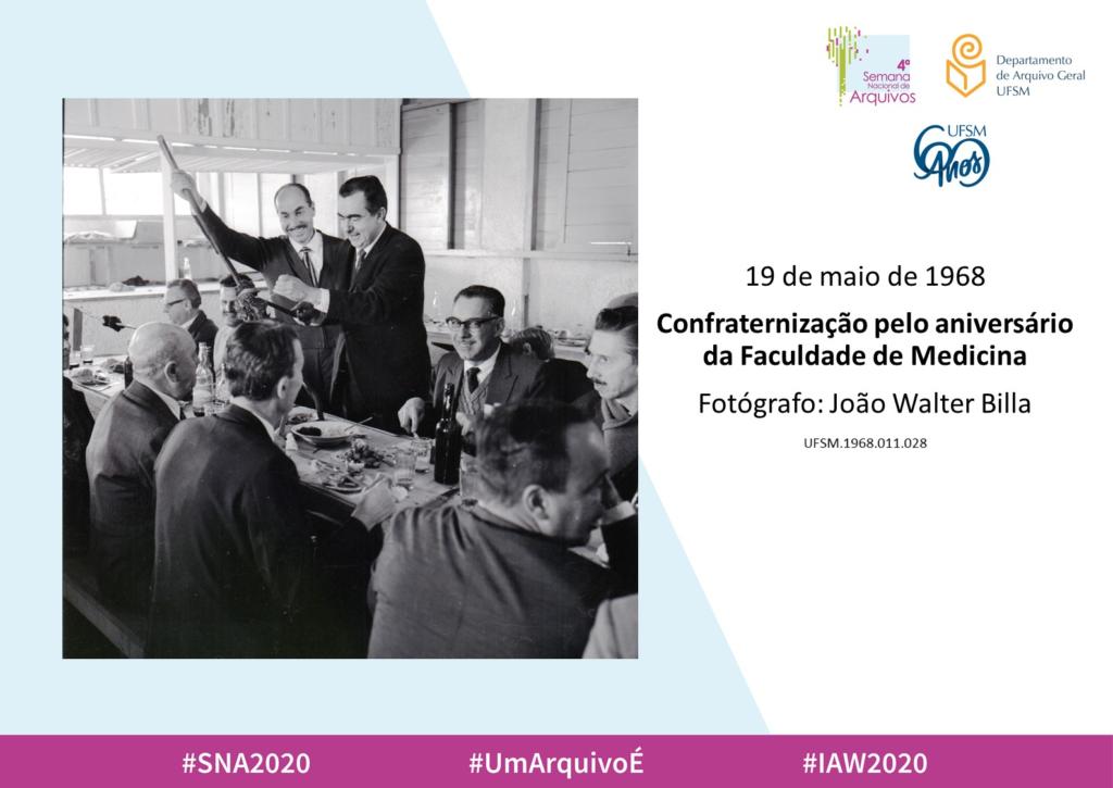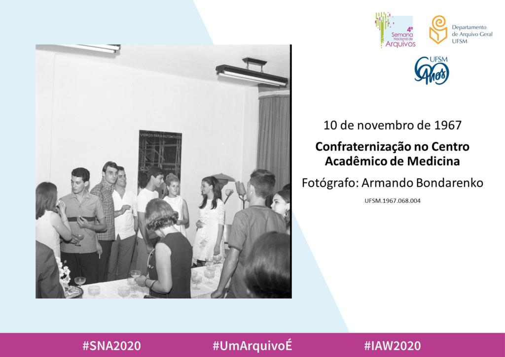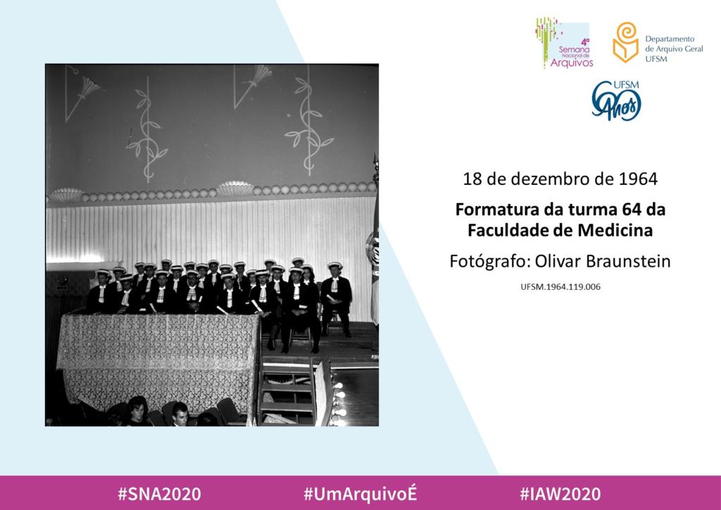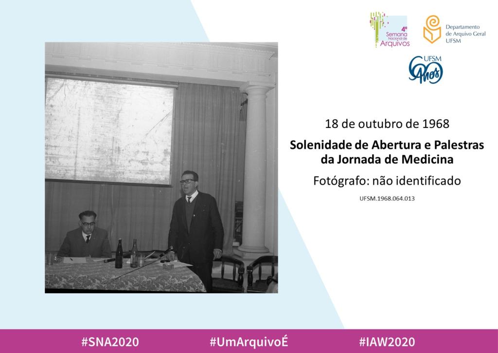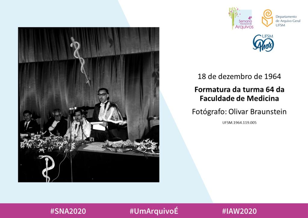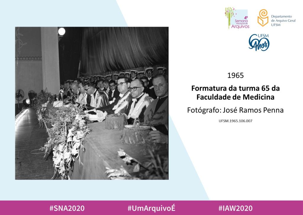 Sobre os personagens das imagens, a minoria deles foi identificada pelos fotógrafos sobre os envelopes que acondicionavam os fotogramas daquele período, por isso caríssimos espectadores, se souberem o nome de alguém, não hesitem em nos informar pelo e-mail arquivofotografico@ufsm.br. E, falando em fotógrafos, produziram imagens nesta universidade na década de 60 os fotógrafos Armando Bondarenko, Bortolo Achutti, João Rodrigues de Lima, José Feijó Caneda, João Walter Billa, José Ramos Penna, Léo Pinto Guerreiro, Olivar Braunstein, Rubens Plácido Gadêa, mas da mesma forma, na maioria dos registros de eventos este não foi identificado.