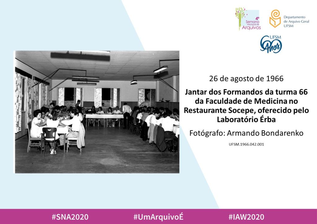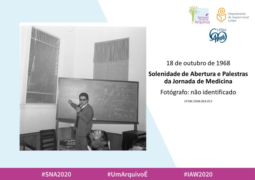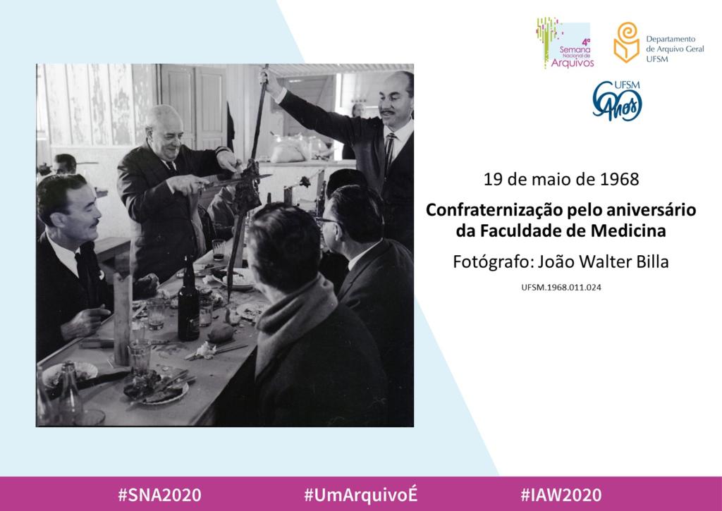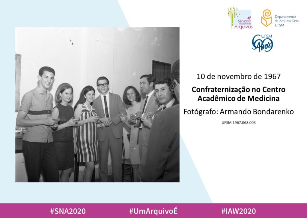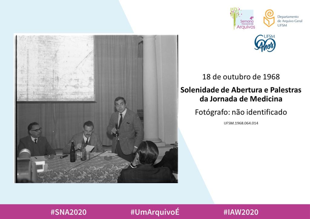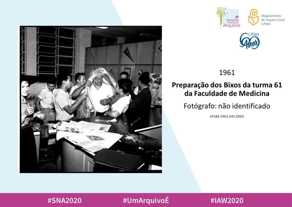 Sobre os personagens das imagens, a minoria deles foi identificada pelos fotógrafos sobre os envelopes que acondicionavam os fotogramas daquele período, por isso caríssimos espectadores, se souberem o nome de alguém, não hesitem em nos informar pelo e-mail arquivofotografico@ufsm.br. E, falando em fotógrafos, produziram imagens nesta universidade na década de 60 os fotógrafos Armando Bondarenko, Bortolo Achutti, João Rodrigues de Lima, José Feijó Caneda, João Walter Billa, José Ramos Penna, Léo Pinto Guerreiro, Olivar Braunstein, Rubens Plácido Gadêa, mas da mesma forma, na maioria dos registros de eventos este não foi identificado.