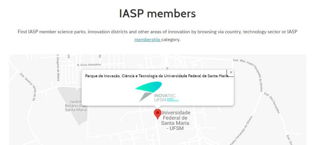 O Parque de Inovação, Ciência e Tecnologia – InovaTec UFSM agora faz parte da principal associação de parques científicos e ecossistemas do mundo. A International Association of Science Parks and Areas of Innovation (IASP) é uma rede global cuja missão é impulsionar o crescimento, internacionalização e eficiência para seus membros.