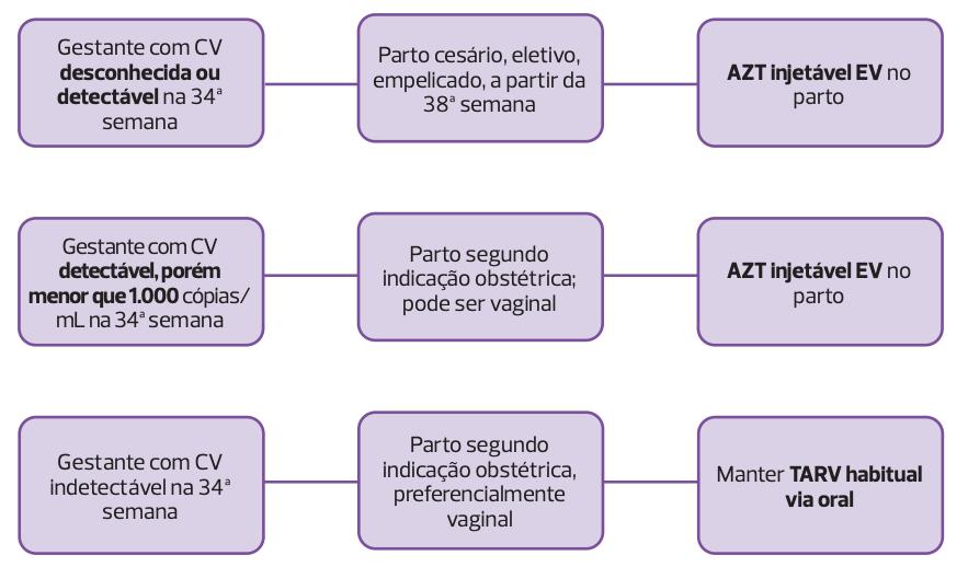 Vale reforçar a recomendação de que o parto vaginal é a via de escolha nas gestantes com CV-HIV menor que 1.000 cópias/mL a partir da 34ª semana.