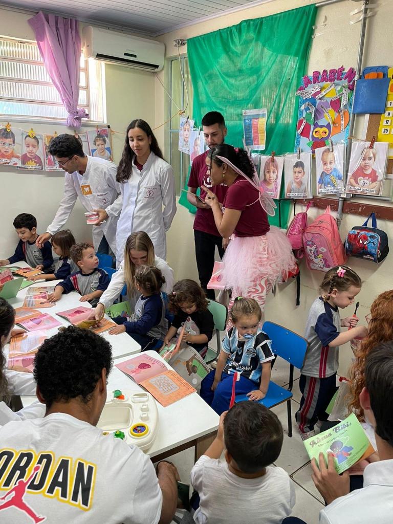 A forma que o grupo encontrou de ajudar na catástrofe foi trazendo ênfase para assuntos emergentes de saúde devido às enchentes. Foram realizadas séries de postagens sobre assuntos de saúde que tinham maior risco de desenvolvimento em virtude da situação que o Estado se encontrava. Foram feitas publicações sobre: tétano, doenças gastrointestinais, leptospirose, acidentes com animais peçonhentos e hepatites. Ao final de cada postagem na plataforma “Instagram” o grupo deixava sugestões de como ajudar os atingidos. Além disso, também realizaram uma atividade vinculada ao projeto “Adolescer” na escola EMEF Maria de Lourdes Ramos Castro, com turmas do sétimo, oitavo e nono ano sobre os seguintes temas: acidentes com animais peçonhentos, tétano, hepatite, dengue, leptospirose, limpeza da água em casa e doenças intestinais.