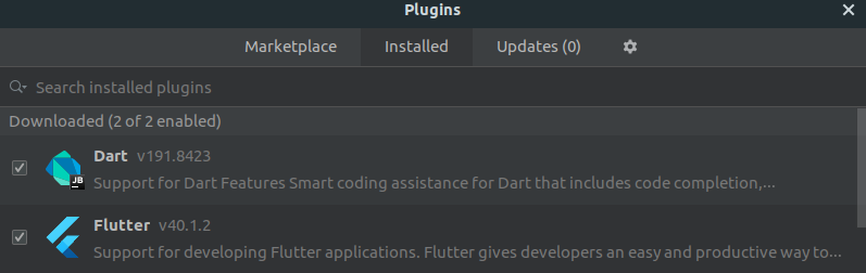 Após isso, procure pelos plugins do Dart e do Flutter o os instale.