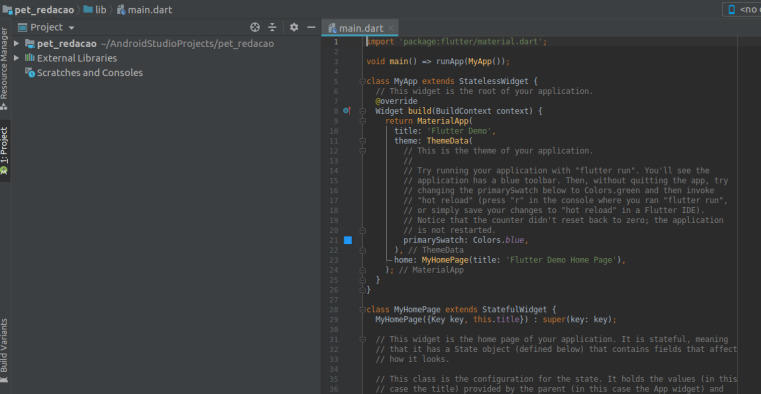 Olá pessoal, o PET-Redação de hoje vai abordar sobre uma tecnologia promissora da Google, o Flutter. É um SDK open-source com o objetivo de construir aplicações mobile, web e desktop a partir de um único código(multiplataforma). Dessa forma, permite um rápido desenvolvimento aliado a uma expressiva e flexível UI. Além disso, o desempenho é nativo tanto para Android quanto para iOS, o que permite que apps fluam mais rápido trazendo ótimos benefícios a aplicação. É programado em Dart, uma linguaguem da Google, parecida com Java, e compilada em código de máquina. Tudo no Flutter são widgets e esses widgets formam uma árvore com hierarquia pai e filho, dessa forma se torna mais fácil de fazer as criações pois há muitas opções de widgets disponíveis, ao contrário do React Native, tecnologia do Facebook que utiliza JavaScript onde widgets são chamados de componentes onde estes não apresentam tanta complexidade, sendo necessário a criação dos mesmos. Além disso, o Flutter apresenta melhor desempenho em comparação com o React Native já que na tecnologia do Facebook é feito uma ponte entre o código nativo e o Javascript. Uma curiosidade muito interessante é de que a Google está desenvolvendo um novo sistema operacional, chamado de Fuchsia, para substituir o grandioso Android utilizando Flutter, já que a performance será muito melhor que o atual SO da empresa. Grandes organizações estão adotanto a nova tecnologia da Google diante das vantagens de a utilizá-la. Um grande exemplo é a Nubank, fintech brasileira que está mudando o cenário de bancos no país, estar alterando suas aplicações para o Flutter. Diante disso, não surgem dúvidas de que o Flutter tem muito a evoluir e crescer no mercado. Que tal instala-lo e dar os primeiros passos