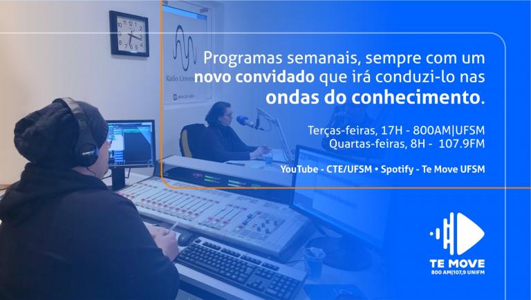 Programa de entrevistas Te Move, vai ao ar nas terças-feiras, às 17h, pela Rádio Universidade 800 AM, e nas quartas-feiras, pela Rádio UniFM 107.9.