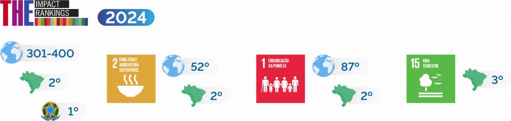 A Instituição também obteve êxito no ODS 15 – Vida na Terra: 3ª melhor do Brasil e na faixa das 401-600 no mundo. Neste ODS, a UFSM destacou-se no combate à perda de biodiversidade, na promoção da gestão florestal sustentável e na recuperação de terras degradadas.