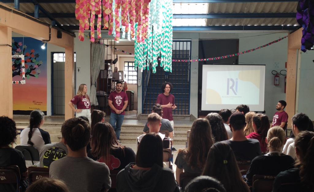 A primeira palestra de 2024 ocorreu na cidade de Santa Maria. Na manhã de quinta-feira (21/03), fomos até o Colégio Politécnico da UFSM para conversarmos com os estudantes do primeiro ano do ensino médio sobre as Relações Internacionais e os Objetivos do Desenvolvimento Sustentável. Desse modo, os alunos puderam refletir sobre a importância do global no cotidiano de sua cidade.