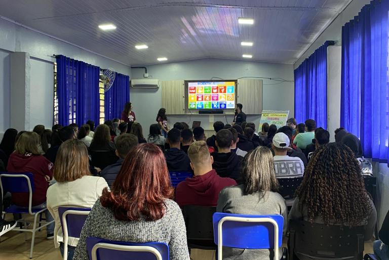 A primeira palestra do ano aconteceu dia 22/11/2022 na cidade de Ivorá para estudantes de ensino médio da Escola Padre Pedro Marcelino Copetti. A temática abordada foi o meio ambiente – com foco no ODS 15: Vida na Terra -, e as Relações Internacionais, levando o debate sobre as questões ambientais e como os países buscam a elaboração de práticas e metas que atingem o cotidiano dos estudantes e seu município.
