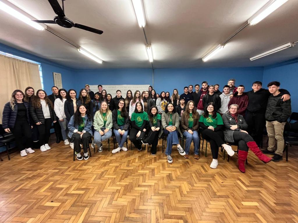 Dia 16/08/2023 a turma do Juca embarcou rumo a cidade de Agudo para a primeira palestra do segundo semestre! O grupo viajou até a Escola Dom Érico Ferrari para falar sobre Política Externa e os ODS e seu impacto na vida dos alunos de ensino fundamental da escola, dando foco ao Objetivos de Desenvolvimento Sustentável 15 – Vida na Terra.