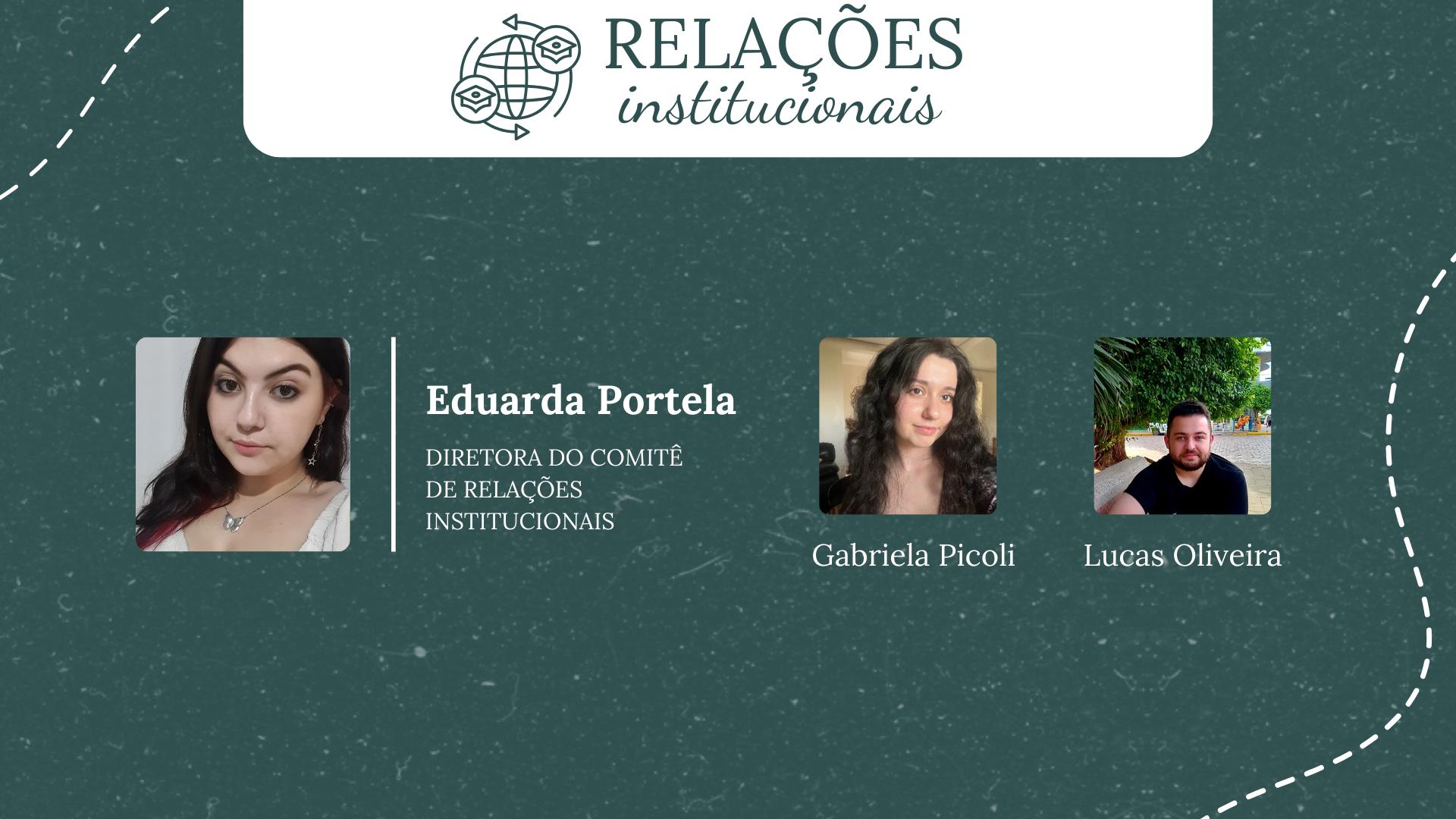 Membros – Lucas Oliveira, discente do curso de Relações Internacionais;