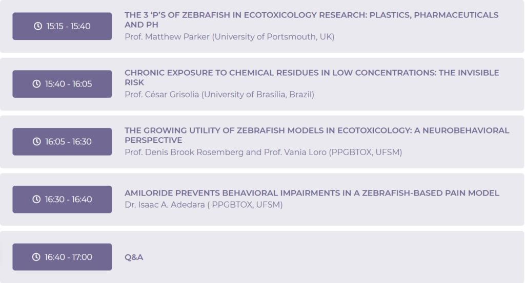 Session 2 – Environmental pollutants: a hidden hazard for human health – Chairs: Prof. Denis Brook Rosemberg and Prof. Vania Loro (PPGBTOX, UFSM)
