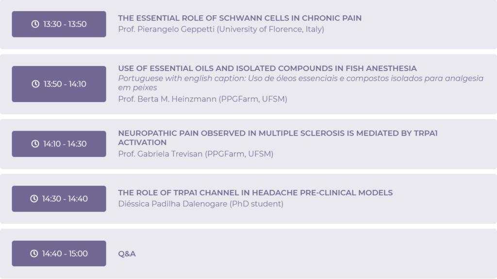 Session 1 – Pain control: a complex challenge for animal and human welfare – Chairs: Prof. Gabriela Trevisan (PPGFarm, UFSM)