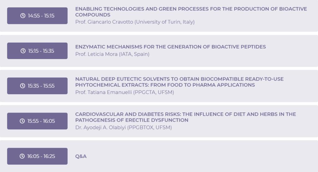 Session 2 – Clean technologies for food processing and extraction of bioactive compounds – Chair: Prof. Juliano Smaniotto Barin (PPGCTA, UFSM) chair: Prof. Jesús Lozano-Sánchez (University of Granada, Spain)