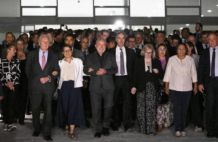Imediatamente após o ocorrido, o Presidente Lula que estava em compromisso oficial voltou a capital federal e se pronunciou sobre o ocorrido, decretando intervenção federal na segurança do DF. No dia seguinte, o Presidente se reuniu com chefes de poderes, ministros e governadores. Após, realizou uma caminhada simbólica até o STF a fim de avaliarem os estragos realizados por bolsonaristas. Ao final, atendeu a imprensa e afirmou: “Nós não vamos permitir que a democracia escape das nossas mãos”. Ainda em janeiro, o STF determinou o afastamento por 90 dias do Governador do Distrito Federal, Ibaneis Rocha, e a prisão do Secretário de Segurança à época, Anderson Torres.