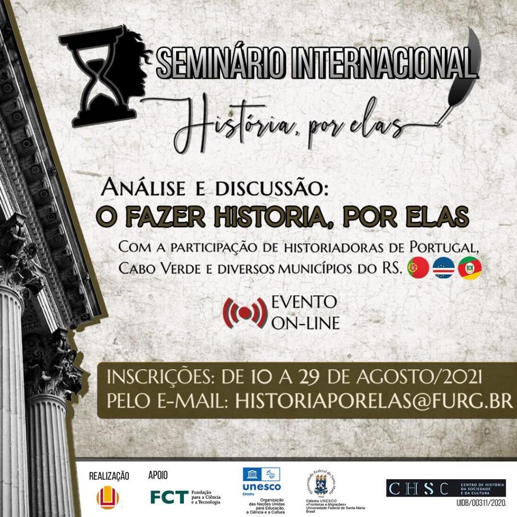 Seminário Internacional: História, por elas. 29 de Agosto de 2021. Realização Curso de História FURG, apoio FCT Portugal, Catedra UNESCO Fronteiras e Migrações.