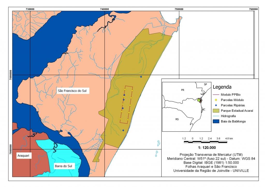 O complexo hídrico da laguna Acaraí, que dá o nome ao Parque é responsável pelo abrigo, reprodução e alimentação de várias espécies aquáticas, que somado a diversas formações de Restingas do Domínio da Mata Atlântica, constituem um importante local para proteção da flora e fauna. Em uma área de 6.667 hectares localizada na planície litorânea da ilha de São Francisco, o Parque Estadual Acaraí (PAEAC), representa o mais importante remanescente contínuo de ecossistemas costeiros em Santa Catarina formado pela restinga da Praia Grande.