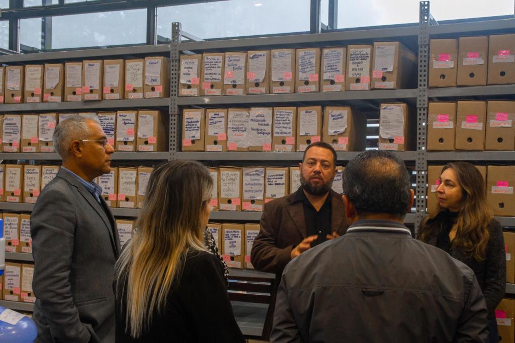 Uma comitiva do Arquivo Nacional esteve nesta segunda-feira (19) na UFSM para conferir de perto o trabalho realizado pelo DAG. A comitiva é formada pelo diretor de Gestão de Documentos e Arquivos, Jean Camoleze, pela coordenadora de Preservação do Acervo, Maria Júlia Faissal Cardoso, e pelo coordenador-geral de Desenvolvimento e Análise de Instrumentos de Gestão de Documentos e Arquivos, Djalma Mandu de Brito.