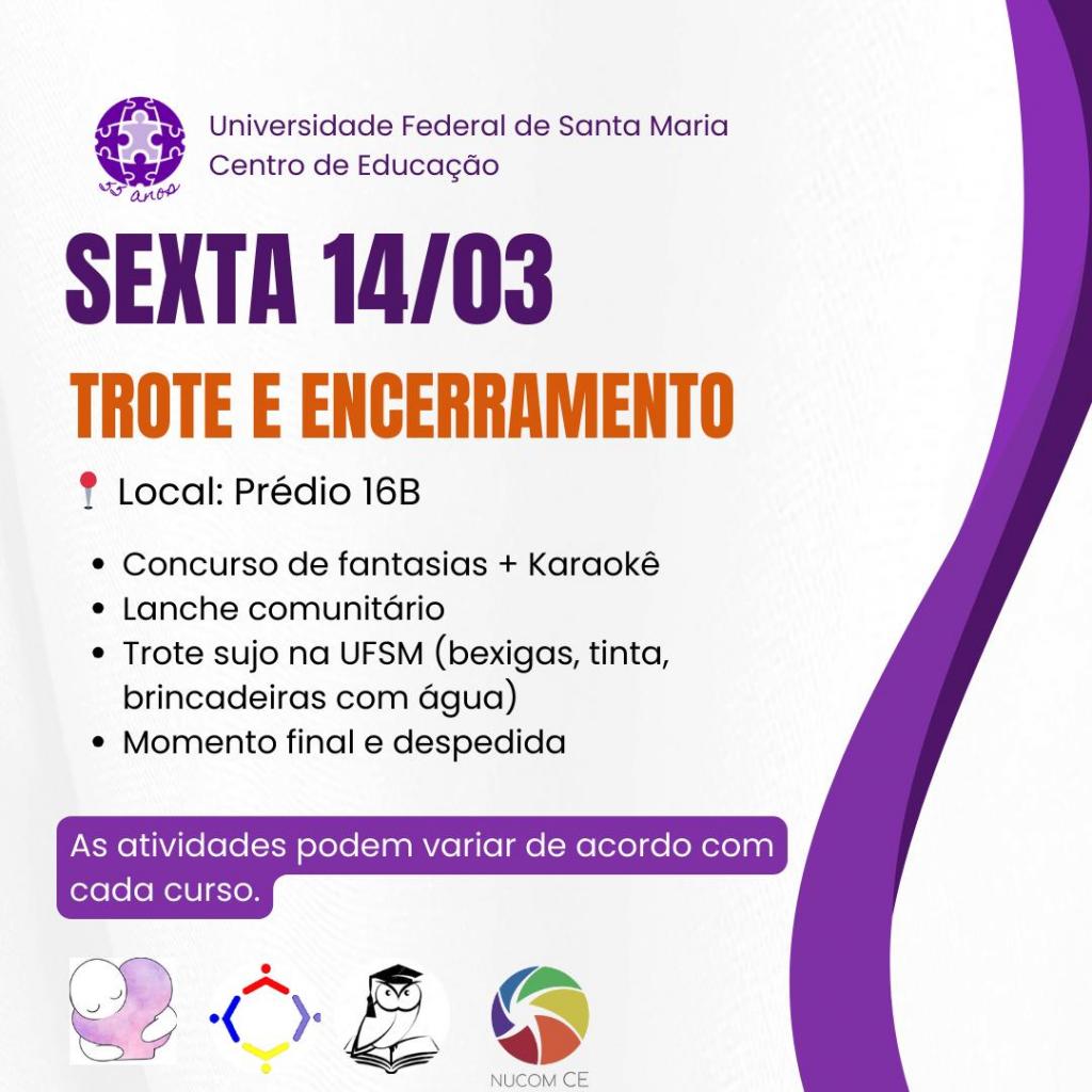 #CalouradaCE #IntegraçãoQueFazADiferença #VemPro16B #DACEnaÁrea #CEfaz55anos #vempraUFSM