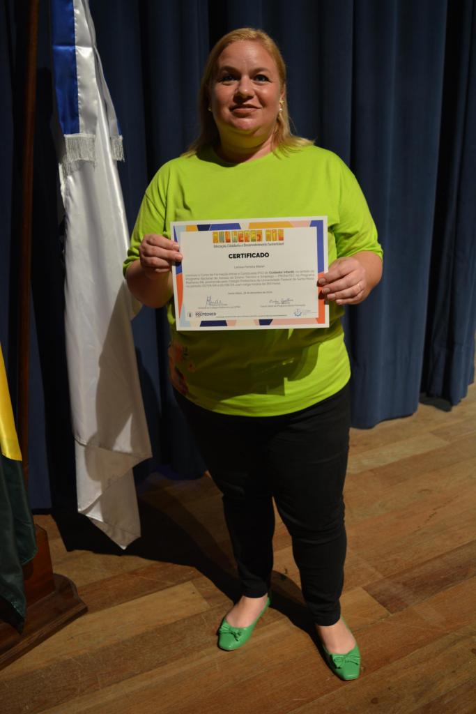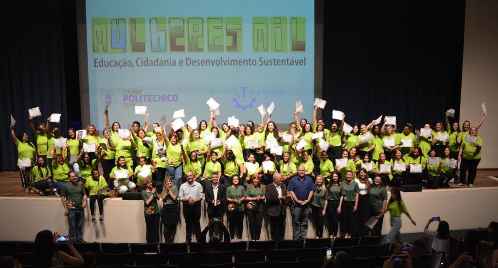 No dia 19 de dezembro de 2024, no Centro de Convenções da Universidade Federal de Santa Maria, 77 mulheres de Santa Maria e cidades vizinhas receberam seus certificados de conclusão de curso pela participação junto ao programa Mulheres Mil. Na solenidade, as concluintes puderam compartilhar com familiares e amigos esta conquista relevante para suas atuações profissionais.