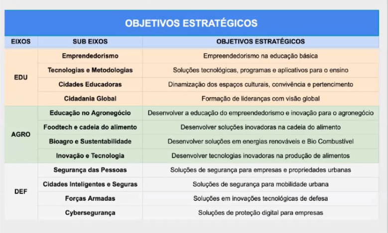 Como Visão de Futuro ficou definido que “A região central do estado será referência nacional, até 2030, na geração de tecnologias e inovação para as áreas de educação, agronegócio, defesa e segurança, pautado na qualidade de vida por meio da atuação colaborativa entre os agentes do ecossistema, inseridos no cenário global”.