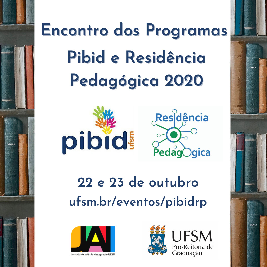A Pró-Reitoria de Graduação da UFSM (Prograd), juntamente com o Programa Institucional de Bolsa de Iniciação à Docência (Pibid) e o Programa Institucional de Residência Pedagógica (RP), estão promovendo o Encontro Pibid/RP. A iniciativa é um dos eventos-satélite da Jornada Acadêmica Integrada (JAI) da UFSM este ano, e ocorre na quinta (22) e na sexta-feira (23).