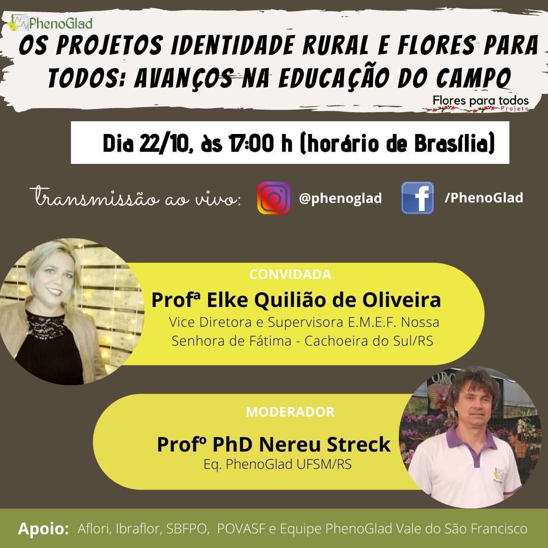 Nesta quinta-feira (22), às 17h, no Instagram @phenoglad e no Facebook, o coordenador da Equipe PhenoGlad na UFSM, Nereu Augusto Streck, conversa com a vice-diretora da escola, Elke Quilião de Oliveira, sobre como os projetos Flores para Todos e Identidade Rural propiciaram avanços na educação do campo.