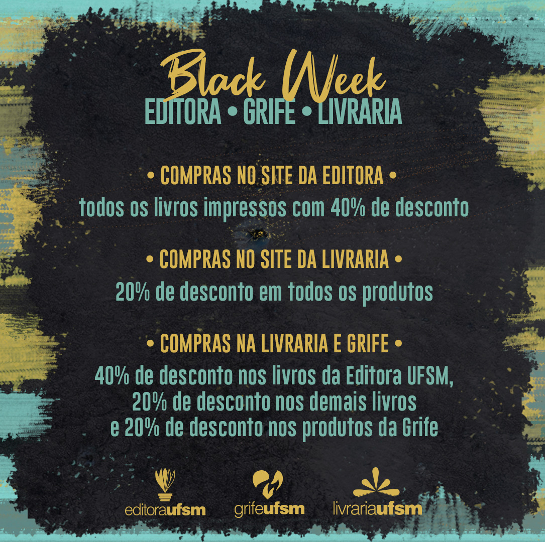 Na próxima semana, de segunda (23) a sexta-feira (27), a Editora e a Livraria e Grife UFSM realizam a tradicional Black Week, com descontos de até 40%. Será possível aproveitar as ofertas nos sites da Editora e da Livraria e diretamente na Livraria, localizada no conjunto comercial da UFSM, sala 12. Confira as condições: