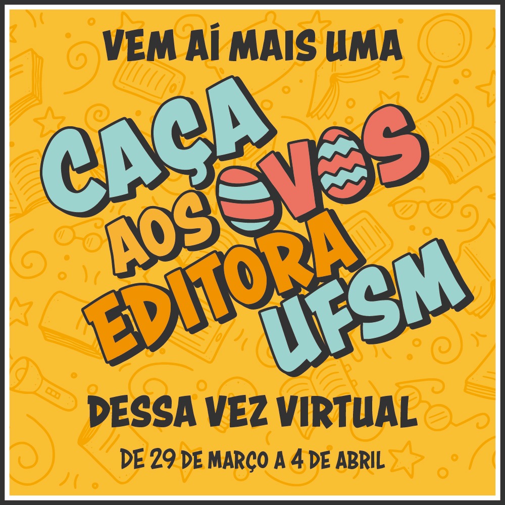 A tradicional “caça aos ovos” da Editora UFSM, ação em comemoração à Páscoa, será realizada de forma online neste ano, devido à pandemia. A partir de segunda-feira (29) até 4 de abril, quem encontrar o objeto escondido em uma imagem que estará disponível nas redes sociais da Editora, Livraria e Grife UFSM garante 20% de desconto em compras. Já os cinco primeiros participantes que enviarem o resultado correto ganham também um caderno da Grife UFSM.