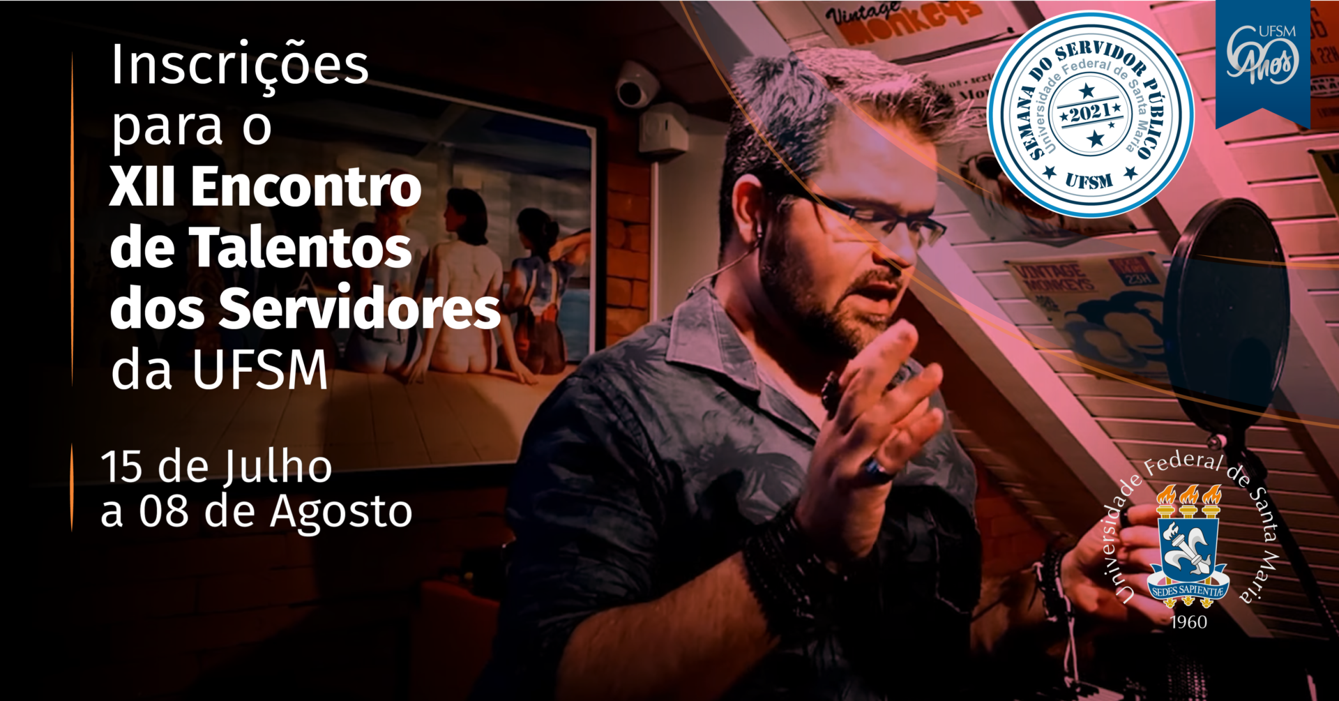 O Encontro de Talentos dos Servidores da UFSM é um evento promovido anualmente pela Pró-Reitoria de Gestão de Pessoas com o objetivo de divulgar e valorizar os talentos dos servidores da Instituição. O espetáculo, que está na 12ª edição, integra a programação da Semana do Servidor Público.