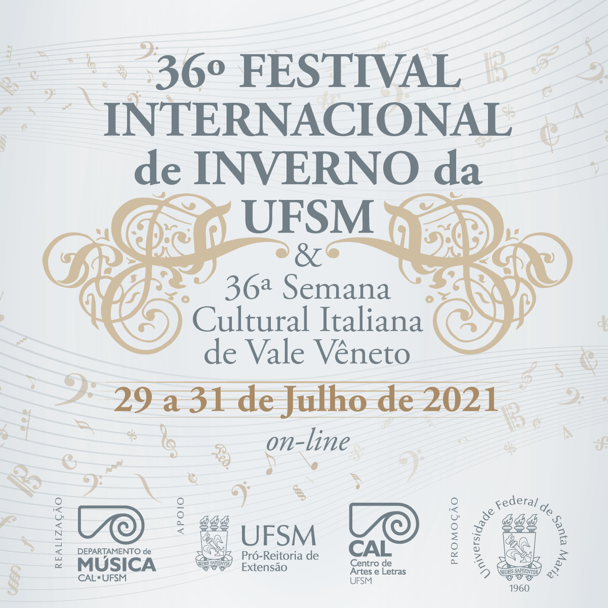 Nesta quinta-feira (29) começa o 36º Festival Internacional de Inverno (FIIUFSM) da UFSM. A abertura está marcada para as 15h, com transmissão ao vivo pelo Farol. A programação segue até sábado (31), sendo que a comunidade poderá acompanhar de forma online várias atividades culturais.