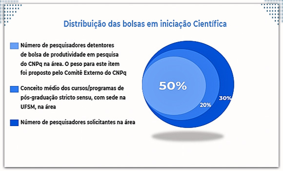 A Universidade Federal de Santa Maria vem aperfeiçoando seu sistema de distribuição de bolsas científicas nos últimos anos, contribuindo de maneira significativa para o avanço da iniciação científica e da iniciação tecnológica. Universidades federais como a UNIPAMPA, também utilizam como base o mesmo sistema de distribuição de bolsas científicas, enquanto outras pretendem seguir este caminho, como a UFAL. As transformações do processo nos últimos quatro anos vêm gerando resultados, com a diversificação das áreas do conhecimento que passaram a ter acesso às cotas de bolsas, bem como projetos de iniciação tecnológica que contribuem para a relação entre a universidade e a economia regional.