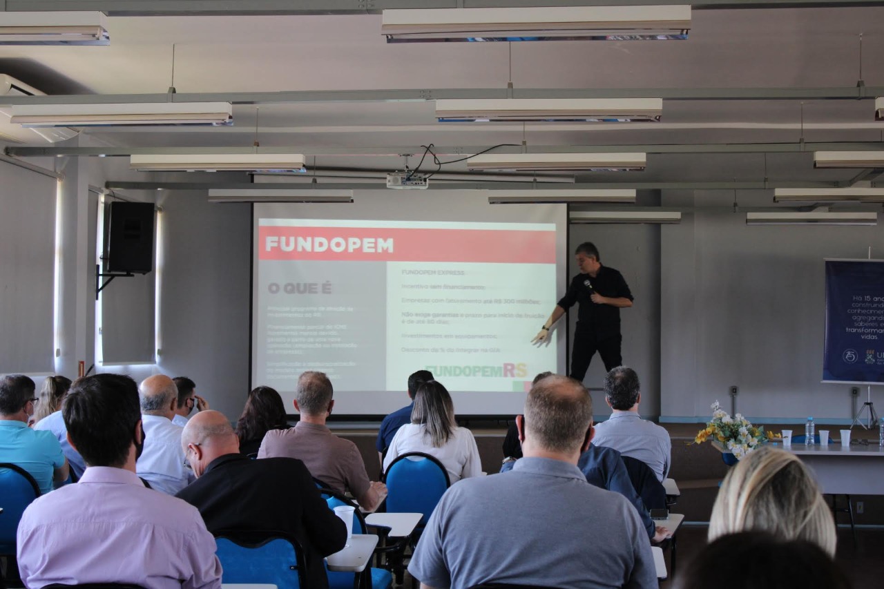 Na última quinta-feira (28), o Secretário de Desenvolvimento Econômico do Rio Grande do Sul, Edson Brum, ministrou, no Auditório da UFSM Palmeira das Missões, a palestra “Incentivos do Governo do Estado a empresas e novas indústrias”. O evento foi realizado em uma parceria conjunta entre o Conselho Regional de Desenvolvimento (Corede) Rio da Várzea, UFSM-PM e a Associação dos Municípios da Zona da Produção (Amzop), e fez parte da programação geral das comemorações dos 15 anos da UFSM-PM.