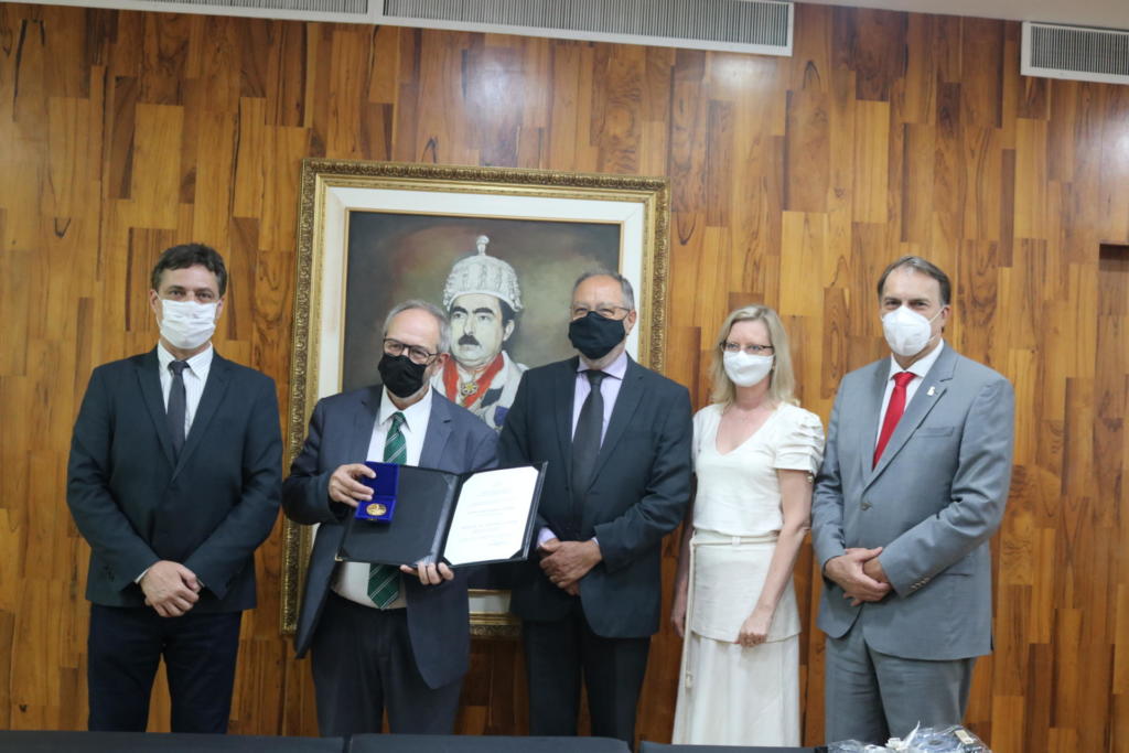 A cerimônia teve a participação do Reitor da UFSM, Professor Paulo Burmann, dos Professores Odilon Marcuzzo do Canto, ex-Reitor da UFSM, Érico Marlon de Moraes Flores, Assessor de Assuntos Internacionais da UFSM, além do agraciado, Alvaro Maglia e o acompanhamento online de Pró-Reitores e Diretores de Unidade.