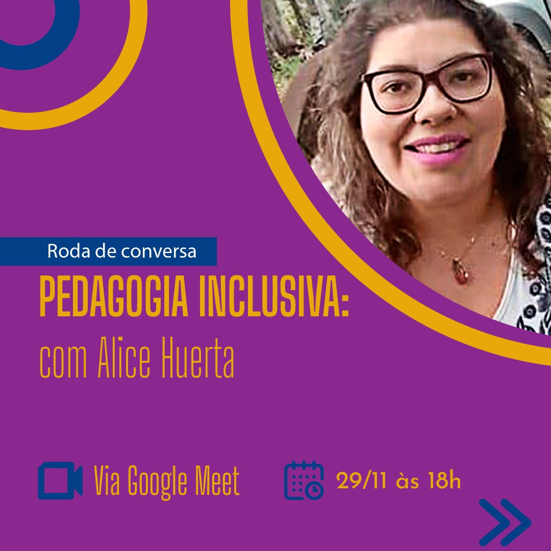 O Programa de Educação Tutorial em Ciências Sociais Aplicadas (PET Cisa) convida a comunidade para uma roda de conversa on-line sobre pedagogia inclusiva. A atividade terá como convidada Alice Huerta, que é graduada em Educação Especial e mestranda em Políticas Públicas e Gestão Educacional pela UFSM. Ela trabalha como educadora especial itinerante nas escolas do campo pelo programa Escola da Terra, da Universidade Federal do Rio Grande do Sul, além de atuar como coordenadora de educação especial na Secretaria de Educação de Caçapava do Sul. A live ocorre na próxima segunda-feira (29), às 18h, via Google Meet. Nela serão apresentados os princípios da pedagogia inclusiva, assim como os desafios trazidos pela pandemia de Covid-19 e a possibilidade de adaptação do ensino híbrido para inclusão.