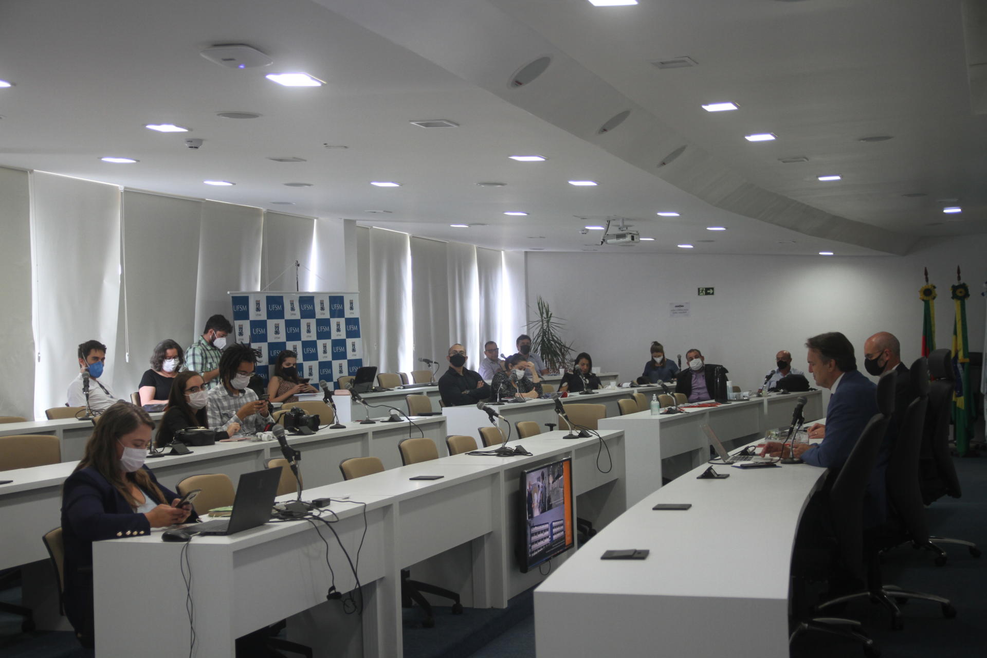 Ao final da apresentação, Burmann respondeu algumas perguntas realizadas pela imprensa presente no local. Uma das principais questões foi da restrição orçamentária severa da universidade e como será o desafio de administrar esse fato durante os próximos anos. Segundo Burmann, a luta junto ao Congresso Nacional ainda está em andamento, juntamente com a Comissão Mista de Orçamento, para recuperar o orçamento, pelo menos, nos patamares de 2019. “Queremos ir além, estamos contando com o fato de que, neste ano de 2021, a inflação está atingindo entre de 10 a 12%, então podemos imaginar que teremos uma facilidade de operação da universidade com um orçamento nos níveis de 2019. Nós pelo menos precisamos chegar ao patamar de 2019, que desde então foi reduzido de forma muito impactante”, comentou.
