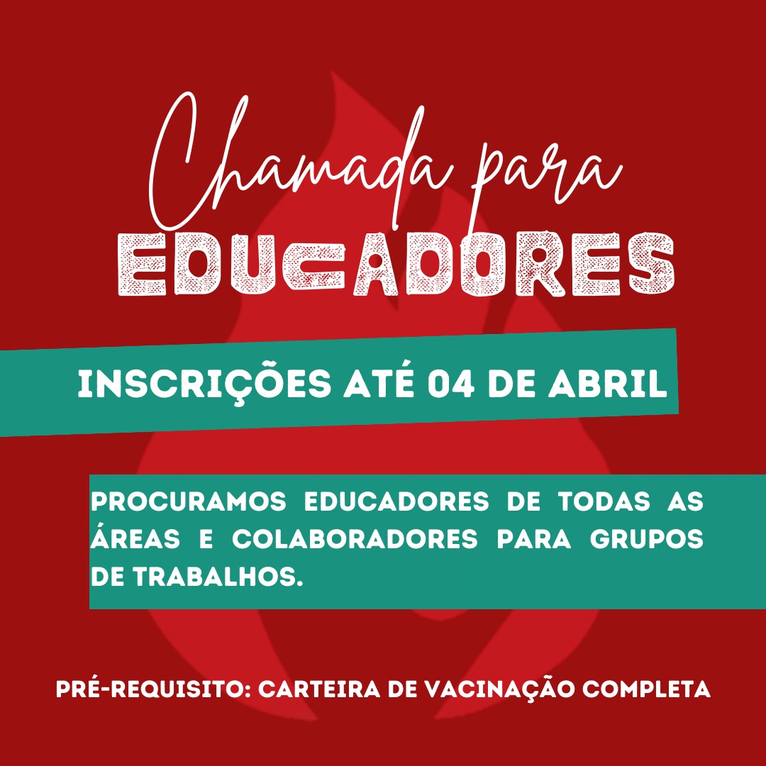 As inscrições podem ser feitas até 4 de abril, preenchendo o formulário. No dia 5 de abril, haverá uma reunião de acolhimento dos novos integrantes, e no dia 12, reunião presencial na sala do Práxis (antiga Reitoria) e confraternização entre os educadores e colaboradores.