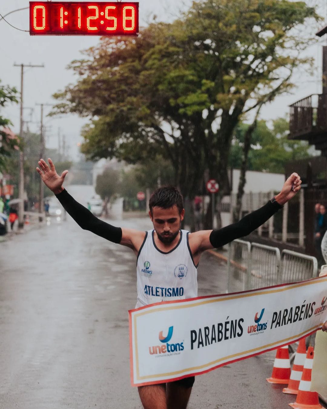 A corrida em Igrejinha fez parte do processo de preparação de Gabriel Alves Pozzo para a Maratona Internacional de Porto Alegre, que acontece no dia 12 de junho. De acordo com ele, a competição no último domingo “foi muito bem organizada, com uma estrutura bem legal no pré e pós prova, com percurso bem sinalizado e vários pontos de hidratação durante o trajeto. A ideia era fazer uma boa marca para ganhar confiança e subir mais um degrau na preparação, mas a chuva durante a prova acabou atrapalhando um pouco os planos. Mesmo assim, consegui liderar de ponta a ponta e vencer a prova, que era o principal objetivo. Estou muito feliz com os resultados que estão começando a aparecer e muito motivado para melhorar minhas marcas.”