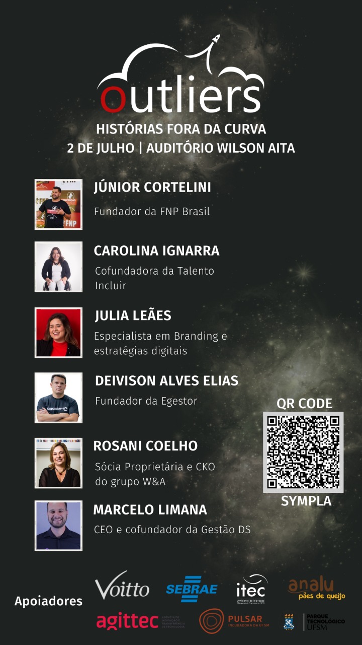 Organização formada por alunos da UFSM com o objetivo de conectar estudantes e empreendedores, a Liga i9 de Empreendedorismo promove neste sábado (2) o evento Outliers – Histórias Fora da Curva. A finalidade do evento é trazer empreendedores para contar suas histórias e compartilhar o que os tornou outliers – uma pessoa única no seu ramo de atuação. Nas últimas edições, participaram 16 empreendedores e mais de 300 estudantes e profissionais da região central do Rio Grande do Sul. Contando com seis palestrantes em sua programação e marcando a volta dos eventos presenciais da Liga i9, o Outliers 2022 ocorre das 8h45min às 16h30min no Auditório Wilson Aita, localizado no anexo C do Centro de Tecnologia. A relação dos palestrantes está disponível abaixo: